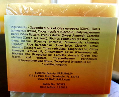 - Essential Oils in the Soap are Lemon, Cinnamon, Orange, Tangerine for Anti-Bacterial Aid and Natural Cleansing