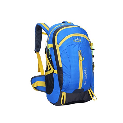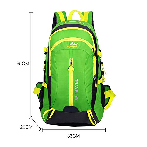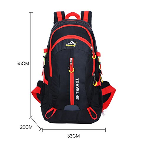-. Feature : Made of super light waterproof fabrics.High strength zinc alloy resin zipper / Reduce the burden system design, travel more convenient, the backpack the thickening sponge protection a good protection; it can effectively reduce the burden / Suitable for cycling hiking camping climbing traveling all outdoor activities / Capacity:40L; Size: 13" x22" x 8" (Width x Height x Thickness) / Package includes: 1 * backpack