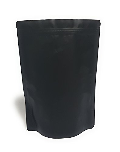 Matte Black 7.8” X 10.6” Stand Up Airtight Zipper Genuine Aluminum Pouches - Smell Leak Proof Odor Resistant - Medical Herbs Coffee Powder Spices Multi-purpose Storage Bags 16 oz (25)