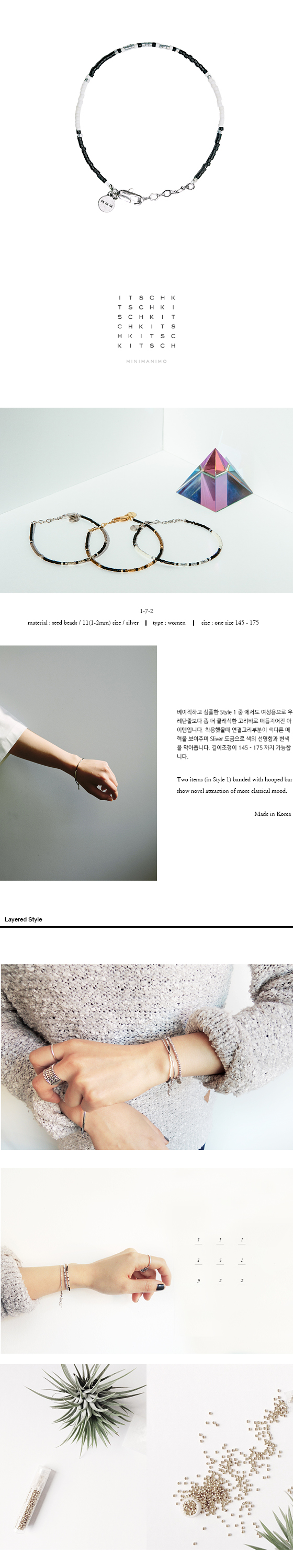 베이직하고 심플한 Style 1 중 에서도 여성용으로 Seed 비즈들이 늘어나는 우레탄줄보다 좀 더 클래식한 고리바로 매듭지어진 아이템입니다.