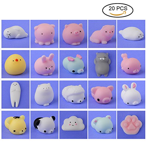 -. Feature : 20 PCS different animals squeeze squishies in total. Super cute design,it's great for killing time and kids gift. / They are amazing soft. You will can not stop pinching them because of the great touch feeling and full squeeze-ability. / These cute squishy animals are easy to clean, can be rinsed with water directly when they are dirty. / Funny to squeeze these toys, Perfect animal squishies to relieve stress and increase blood circulation of hands. Enjoy your funny game time with families or friends. / Warning: parents should take good care for you children,please do not put it in mouth! (the product is inedible)