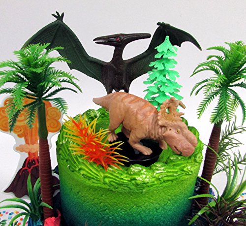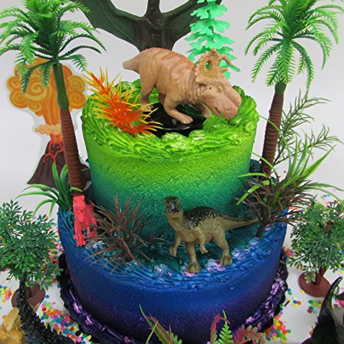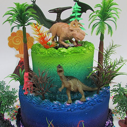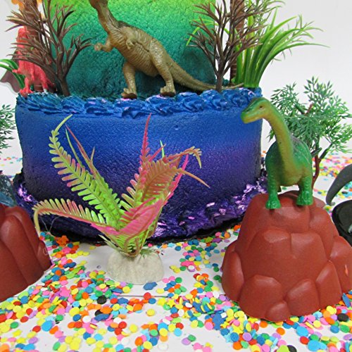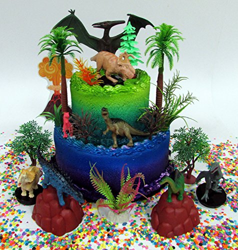 Prehistoric Deluxe DINOSAUR 18 Piece Birthday CAKE Topper Set Featuring Random Dinosaur Figures, Themed Decorative Accessories, Dinosaurs Average 1/2" to 4" Inches Tall