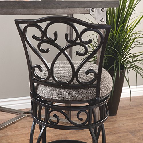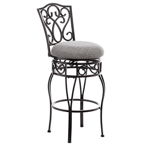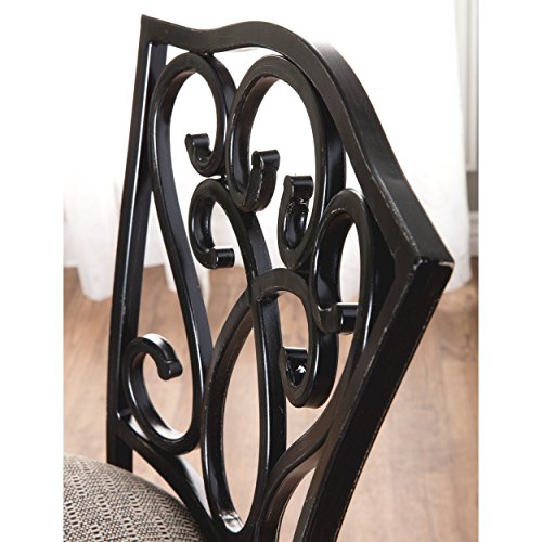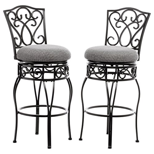 -. Brand : ModHaus Living -. Color : Black -. EAN : 0699252430804 -. Feature : Enjoy morning coffee at your kitchen bar with this pair of Chase stools. / They feature stunning curved metal backs and aprons for a look that works great in country French or shabby chic decors. / Black and tan seat upholstery fabric, black wrought iron color and scroll. / Set of two bar stools to complete your kitchen decor. / Assembly required. Dimensions: 42.5 H x 17.5 W x 20 L inches | Seat Measures: 30 H inches. Bonus pen will be sent separately. -. Label : ModHaus Living -. Manufacturer : ModHaus Living -. ProductGroup : Furniture -. ProductTypeName : HOME_FURNITURE_AND_DECOR -. Publisher : ModHaus Living -. Size : Bar Height -. Studio : ModHaus Living -. Title : Classic Scroll Black Metal 30 inch Curved Back Bar Stools Bar Height with Back Swivel and Black and Tan Fabric Seat (Set of 2) - Includes Modhaus Living Pen -. UPC : 699252430804