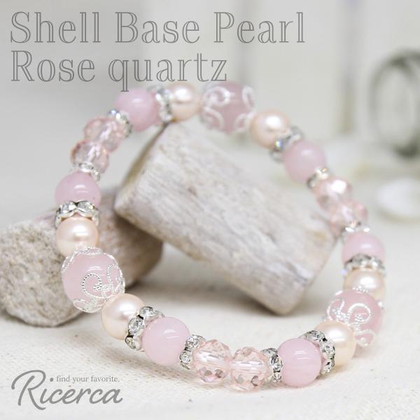 ローズクォーツをふんだんにあしらいピンクシェルパールをアクセントに、ガーリーに仕上げました♪