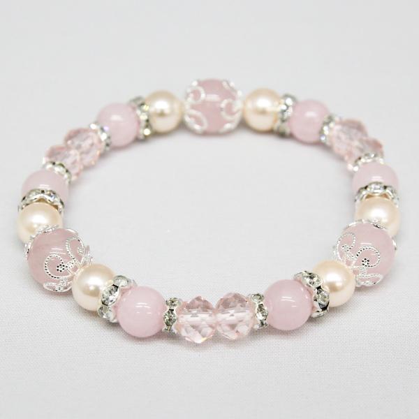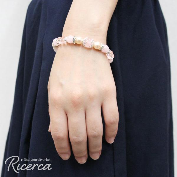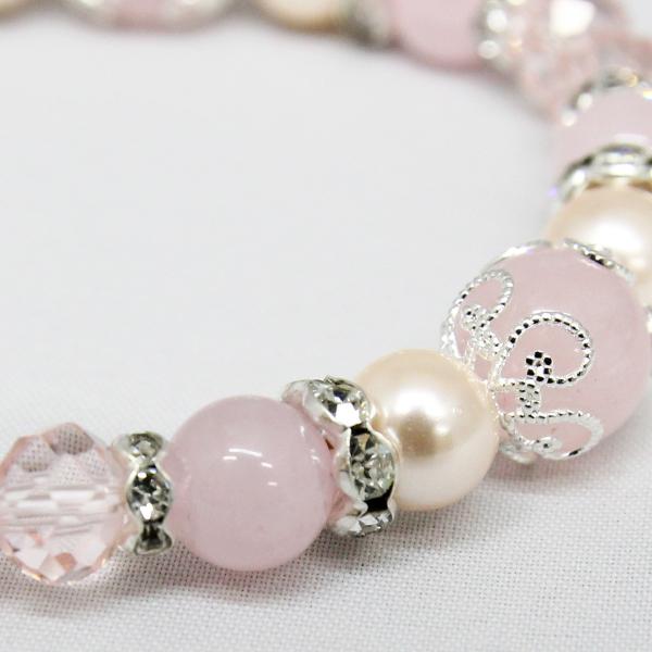 【商品詳細】内周:約16.5cm 玉サイズ:ローズクォーツ 約10mm・約8mm ピンクシェルパール 約8mm