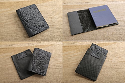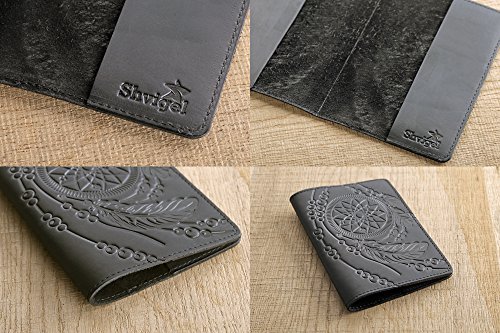-. Title : Shvigel Passport Cover - Holder Leather - Dream Catcher 3D Embossing - Unique Design - Minimalist Travel Document Case
