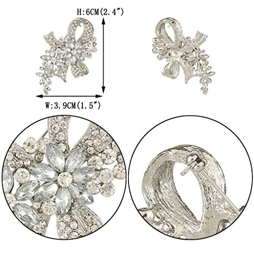 -. Title : EVER FAITH® Wedding Silver-Tone Bowknot Flower Clear Austrian Crystal Brooch