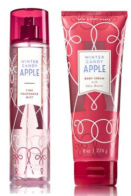 -. Feature : Winter Candy Apple fine fragrance mist & ultra shea body cream 8 Oz. / A merry-berry blend of red apple, winter rose petals, candied orange, maple leaf and fresh cinnamon / Great coverage while conditioning aloe mist nourishes skin for the lightest, most refreshing way to fragrance. / Infused with luxuriously rich shea butter, provides 24 hours of nourishing moisture. / With soothing Aloe Butter, pampering Cocoa Butter and more Shea than ever before.