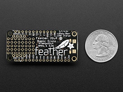 Feather is the new development board from Adafruit, and like its namesake it is thin, light, and lets you fly! We designed Feather to be a new standard for portable microcontroller cores.This is the Feather 32u4 Basic Proto, it has a bunch of prototyping space built right in We have other boards in the Feather family, check'em out here!