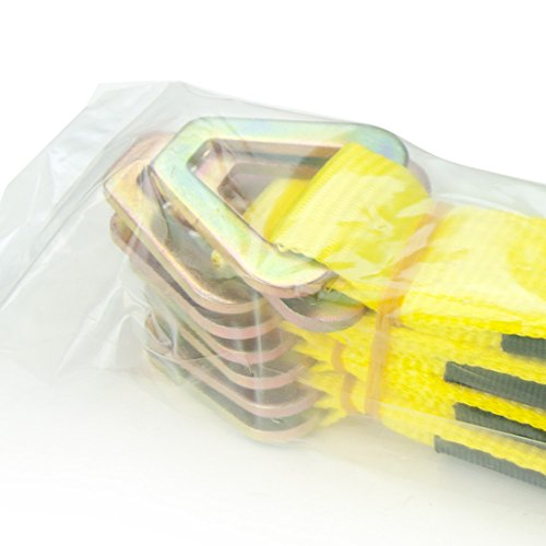 HEAVY-DUTY CONSTRUCTION - Flexible 1-ply 2'' wide yellow tie down webbing for excellent durability and long service life. Each strap includes a full body cordura wear pad for even more abrasion resistance, which provides longer strap life and protects the vehicle from inadvertent scratches.