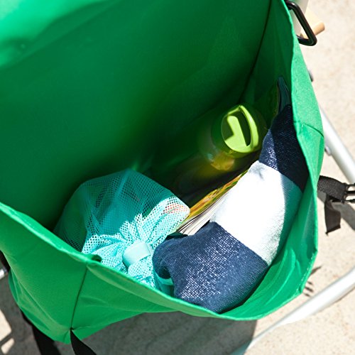 - Feature : Four reclining positions and adjustable padded headrest / Durable polyester sling-seat and handy storage pocket / Hardwood armrests and durable aluminum frame / Easy to transport with convenient backpack carrying straps / Measures 26L x 23.5W x 31.25H inches