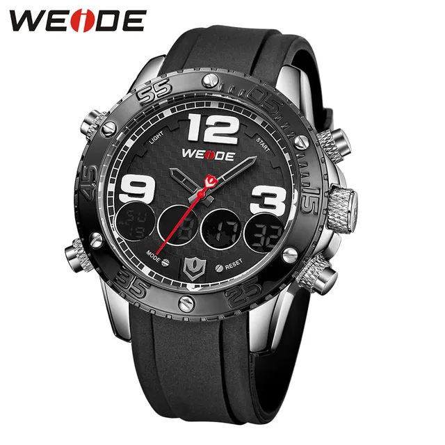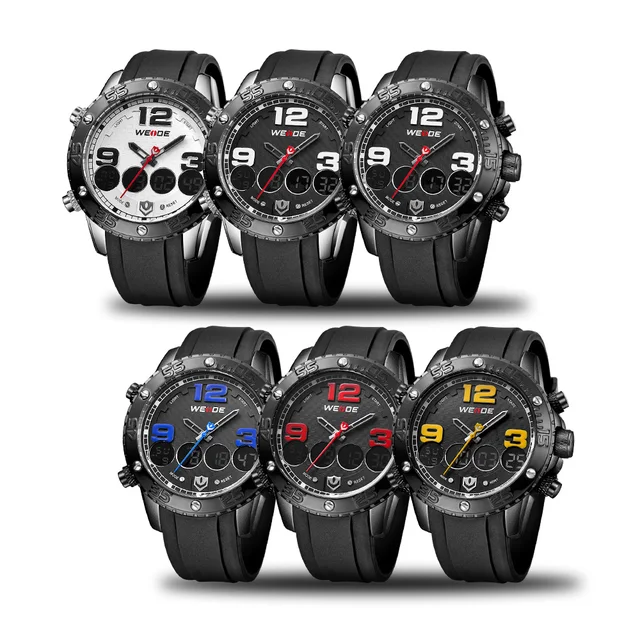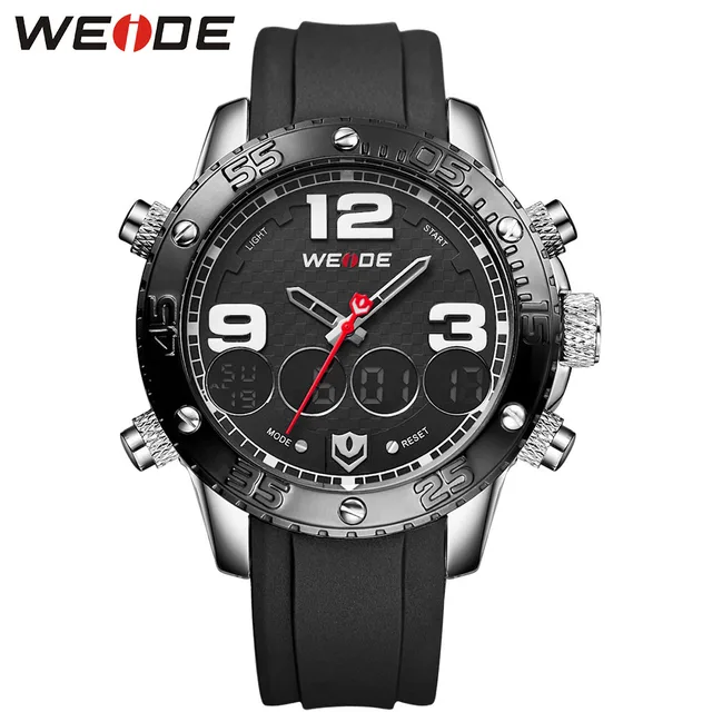 | [해외] 웨이드 남성 실리콘 시계 LCD 석영 스포츠 스포츠 디지털 시계 블랙 analong 전자 손목 방수 캠핑 시계 역할 |