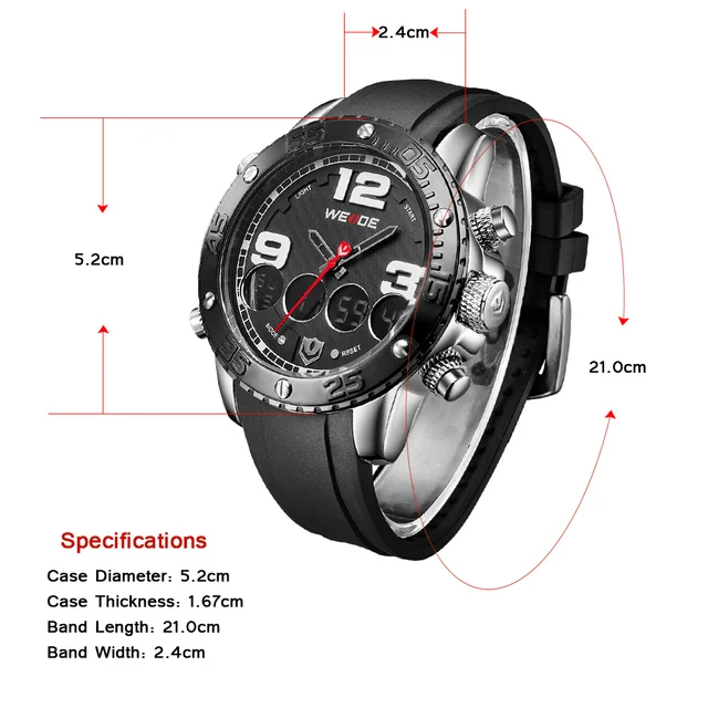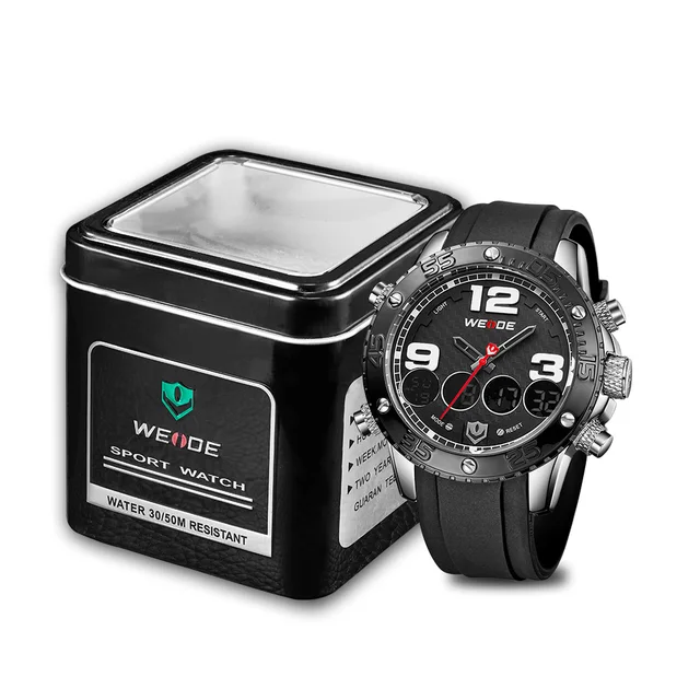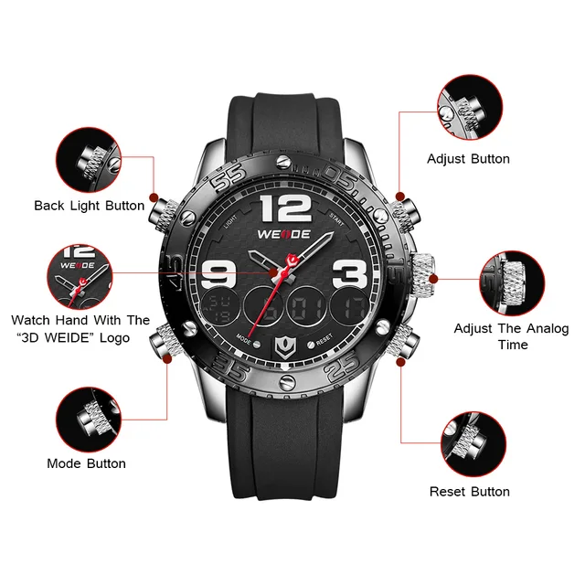 웨이드 남성 실리콘 시계 LCD 석영 스포츠 스포츠 디지털 시계 블랙 analong 전자 손목 방수 캠핑 시계 역할 포장 상세