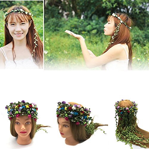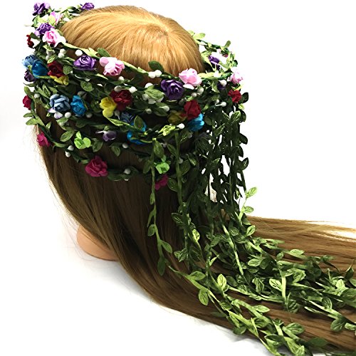 ✿Flower Garland Crown Festival Wedding Hair Wreath BOHO Floral Headband Stretches to be worn by Little Girls, Baby Girls,Big Girls,Women, Newborns, Toddlers Etc.