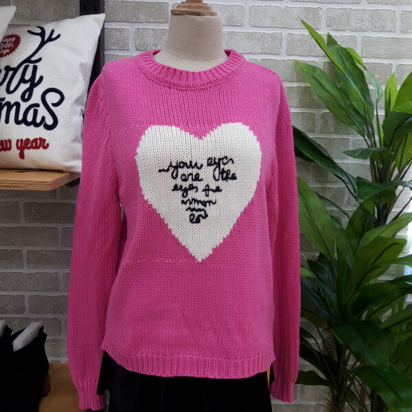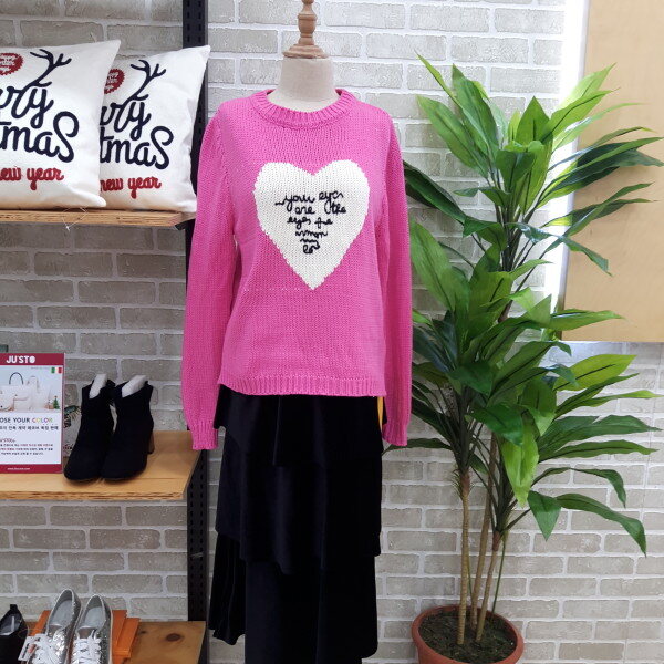 컬러가 핫 하고 이쁜 봄신상 니트입니다가슴부분에 하트가 포인트로 데님바지 스커트 어디든 코디하시기 좋은 니트입니다