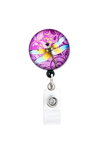 Dragonfly Purple - Retractable Badge Reel With Swivel Clip and Extra-Long 34 inch cord - Badge Holder