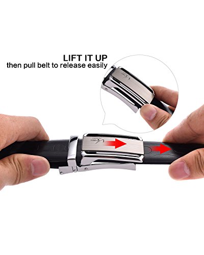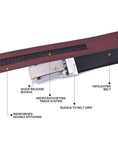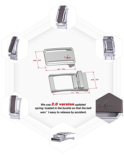 This is 2018 new updated adjustable dress ratchet belt, automatic belt 2.0 version. The traditional magnet automatic buckle is stick and malfunction, while our spring-loaded buckle is more reliable.
