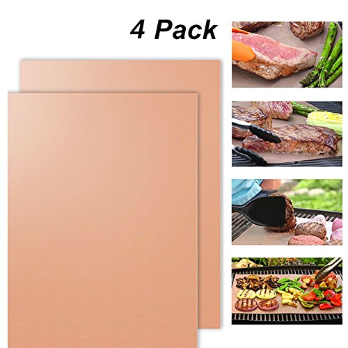 Luxanna Golden Grill Mat Set, 4pack- 100% Non-stick BBQ Grill & Baking Mats, Reusable and Easy to Clean - Work on Gas, Charcoal, Electric Grill and More
