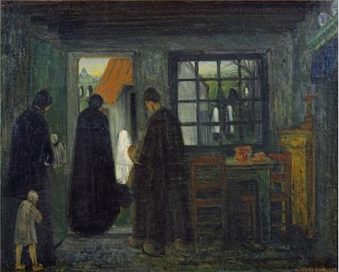 Title : Oil painting 'Communicant Leaves the House by Albert Servaes' printing on high quality polyster Canvas , 8x10 inch / 20x25 cm ,the best Game Room decor and Home decoration and Gifts is this Beautiful Art Decorative Prints on Canvas