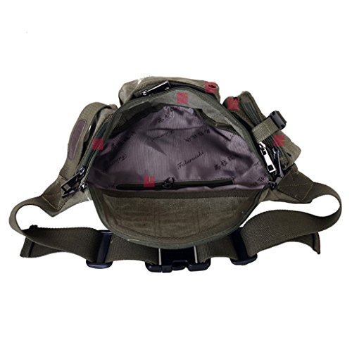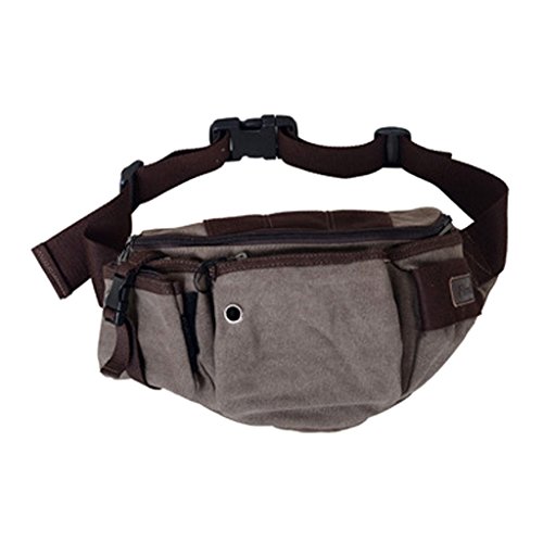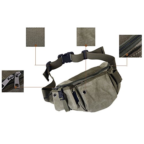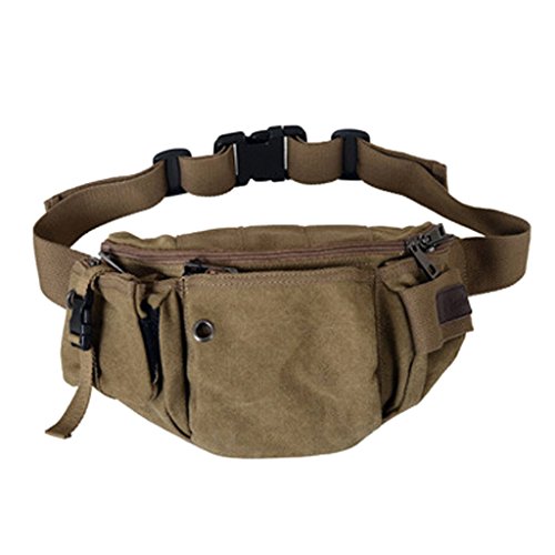 Daosen Canvas Multiple Pocket Adjustable Fanny Pack Sport Waist Bag Hiking Pack Khaki