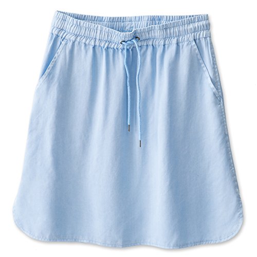 -. Feature : Semi-fitted skirt, elastic waistband with drawstring / Front pockets, back welt pocket, scalloped hem / Length hits right above knee length: 20 inch size M fabric: 6oz 100% tencel allover P.R.Int and garment dye / 100% Tencel