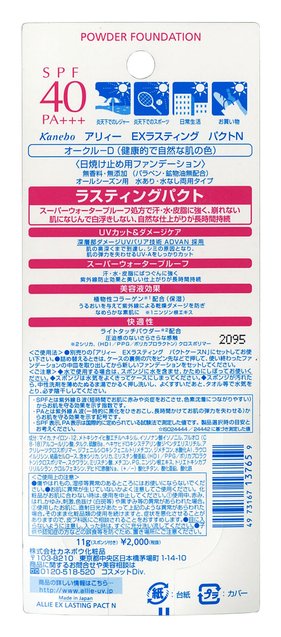 Kanebo Aryi EX Lasting Pact N SPF40 ocher -D refill PA +++