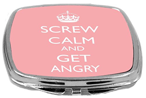 Rikki Knight Compact Mirror, Screw Calm and Get Angry Light Pink