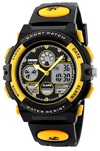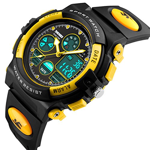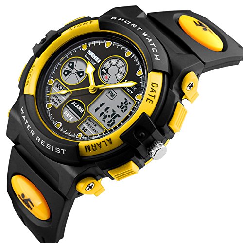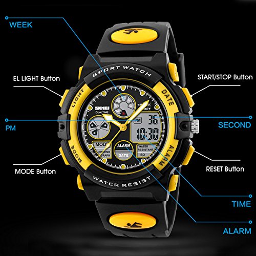 -. Title : Skmei Kids Watches Boys Digital Analog Waterproof 5ATM Dual Time Zone Sports Outdoor LED Electronic Wristwatches Yellow