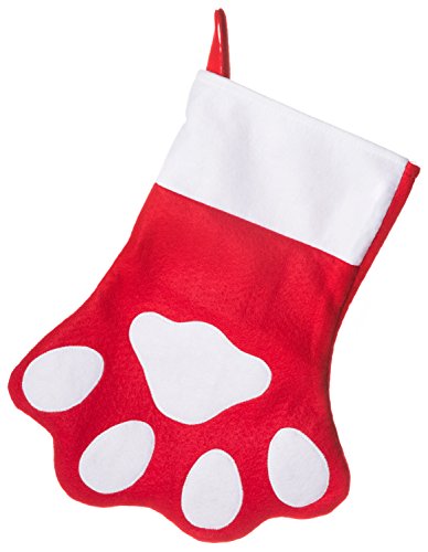 Red Felt Paw Christmas Stocking 15", Holiday Home Decor, Party Decorations, Gifts and Treats Bag for Your Dog or Cat