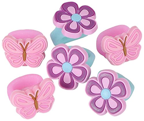 Rhode Island Novelty 8 Piece Butterfly and Flower Ring, 1", Assorted