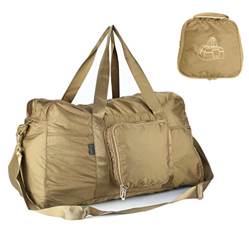 -. Feature : Durable - This foldable travel duffel is made of water and tear resistant nylon material. High quality 2-way metal zipper closure, reinforced handles and adjustable shoulder strap / Roomy(40 L) and Lightweight(0.9 pounds) - Dimensions: 21.3 x 11.2 x 10.3 inch, the sports duffel bag has several pockets for compartment, 1 large main compartment to carries your gadgets and personal stuffs, 1 front zipper pocket and 2 sturdy side pockets for water bottles, small accessories / Versatile - Storage bag that folds up super small and thin to fit inside smaller bags and gym lockers, to be used as a laundry bag as well, the Velcro on the back to attach lage handle for easy transport / Compact: Packable travel bag for your convenience when a vacation, unfold it from pocket to duffel bag, avoid overweight charges and use it for excess baggage.This portable bag is perfect for day-to-day use or occasional travel, also a great gift to everyone / Intended Use: It is suitable for gym, sports, travel, camping, shopping and hiking. Fast packed into itself which means you don't need to take an extra pouch, the handy bag is a must-have for any traveler