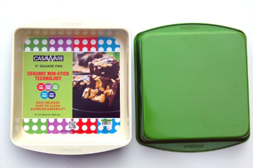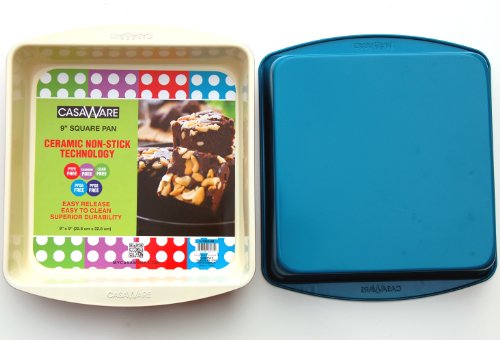 The casaWare 9" Square Pan is a highly versatile pan for brownies, cakes, bar cookies, crisps and crumbles too! The pan had two layers of non-stick ceramic coatings that make it both durable and easy to clean. The cream colored non-stick baking surface is PTFE Free, Cadmium Free, Lead Free, PFOA Free and PFOS Free. The base of the 9" Square Pan is fashioned colored, hi heat resistant non-stick. USE and CARE Instructions: Before First Use- Remove all packaging materials and labels. Wash in warm soapy water. Rinse and dry thoroughly with a soft cloth. UTENSILS - Plastic, rubber, silicone or wooden utensils are recommended. Avoid using any sharp objects or metal utensils because they can scratch any non-stick surface. Always remove food from the pan before slicing or cutting. CLEANING - Cool completely before washing. Hand wash with a soft cloth or sponge and nonabrasive cleansers or liquid dishwashing soap in warm water. Rinse and then dry with a soft towel.Feature