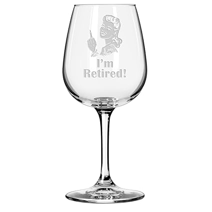 - EXCELLENT FOR WINE LOVERS – Our “I’m Retired” glasses combine elegant design with crassness. Each wine glass is made in the USA by American workers and hand-etched with the traditional sandblast method. The generous, 12.75 oz size of the glasses allow wine experts and newcomers to fully savor the richness of their wine while also fitting nicely in the dishwasher! Top gift for retirees, wine lovers and wine enthusiast. These well-balanced glasses are suitable for either red or white wine.