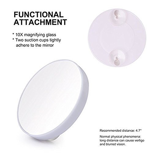 - 10X MAGNIFICATION SPOT MIRROR: To make sure every detail of your hair and makeup are in place, works best for putting eyeliner, mascara, eyebrows, contact lens, etc. Gives an ultra clear view of your skin without any glare.