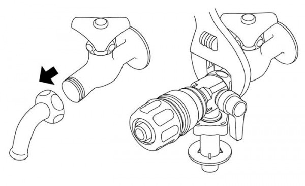 洗濯機と散水など、2方向に切替えて使用可能!ジョイント式でホースがワンタッチで着脱できます。