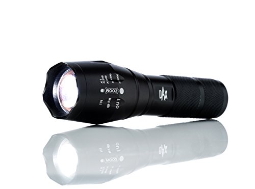 DAX Tactical LED Flashlight Kit: Super Bright 1200 Lumen CREE LED, Rechargeable, Zoomable, Pocket Size (for camping and hiking) 5 modes, 18650 batteries, Water Resistant, Charger and Gift box Included