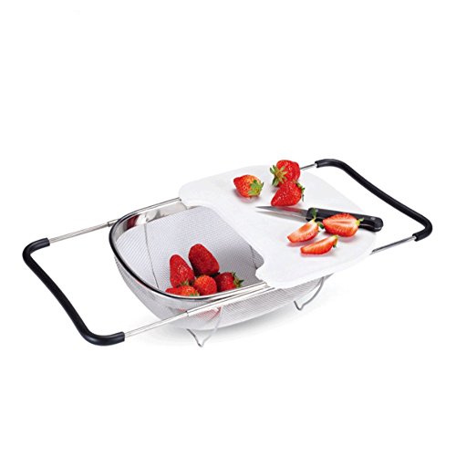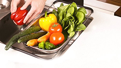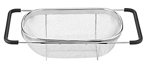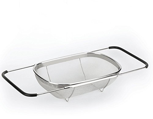 Over The Sink Stainless Steel Oval Colander Kitchen Utensils and Expandable Rubber Grip Handles Sink Colander for Rinse, Drain, Fruits, Vegetables, Pasta, Dylan Excellent