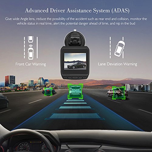 - ADVANCED DRIVER ASSISTANCE SYSTEM(ADAS) - including-front car warning system (FCWS); lane deviation warning system(LDWS); low light warning system(LLWS). when the front car is too closed, when the car deviates from a normal lane and outside is dark, the camera will give an alarm