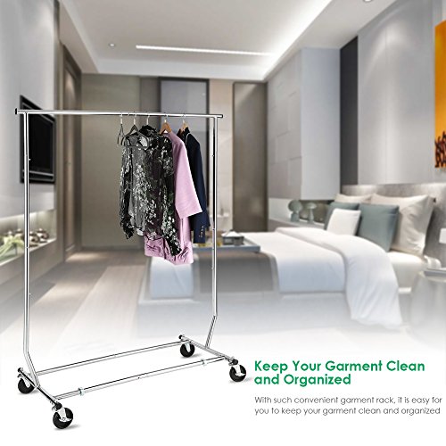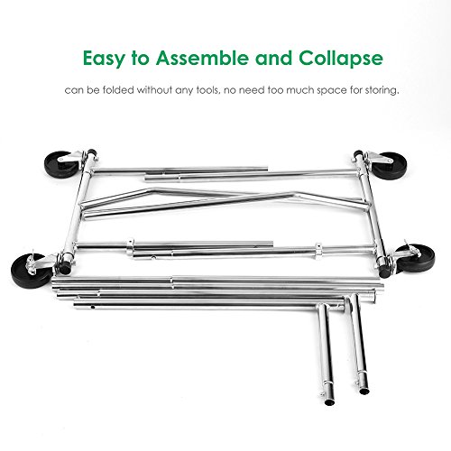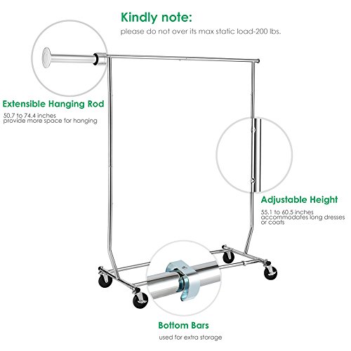 Sturdy and Stainless Steel--- It is constructed of heavy-duty stainless steel frame, which is thickened and rust-proof. Therefore, the weight capacity is up to 200 lbs, sturdy enough for you to hang lots of clothing. Kindly note: please do not hang heavier items over its max load capacity to prevent bend or being out of shape.