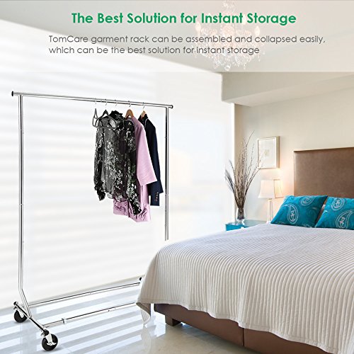 TomCare Garment Rack Adjustable Clothes Rack Clothing Rack Extensible Clothes Hanging Rack Commercial Grade Garment Rack for Hanging Heavy Duty Stainless Steel Single Clothing Garment Racks on Wheels
