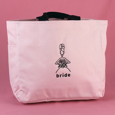 Studio : Hortense B Hewitt Publisher : Hortense B Hewitt Binding : Kitchen Product Description This light pink tote bag with black handles and embroidered design is a great place to put the bride's wedding-day essentials, and she'll love using it afterwards. Bag has inner and outer pockets. Made of 100-percent polyester; bag is 12-Inch by 6-1/2-Inch by 14-Inch. 0