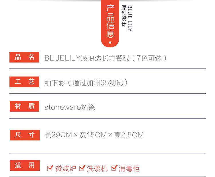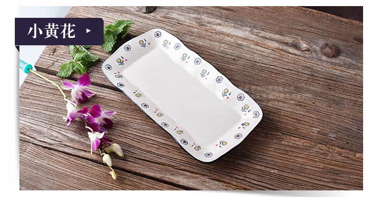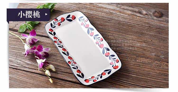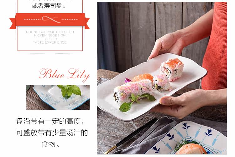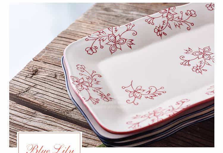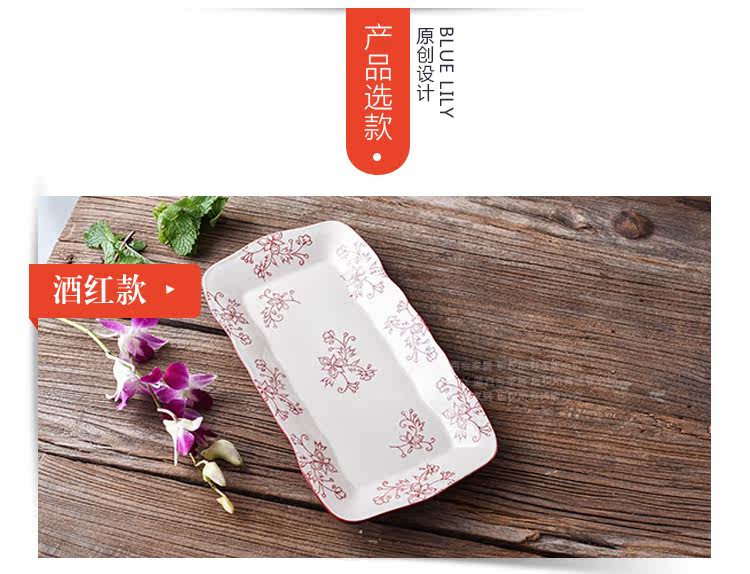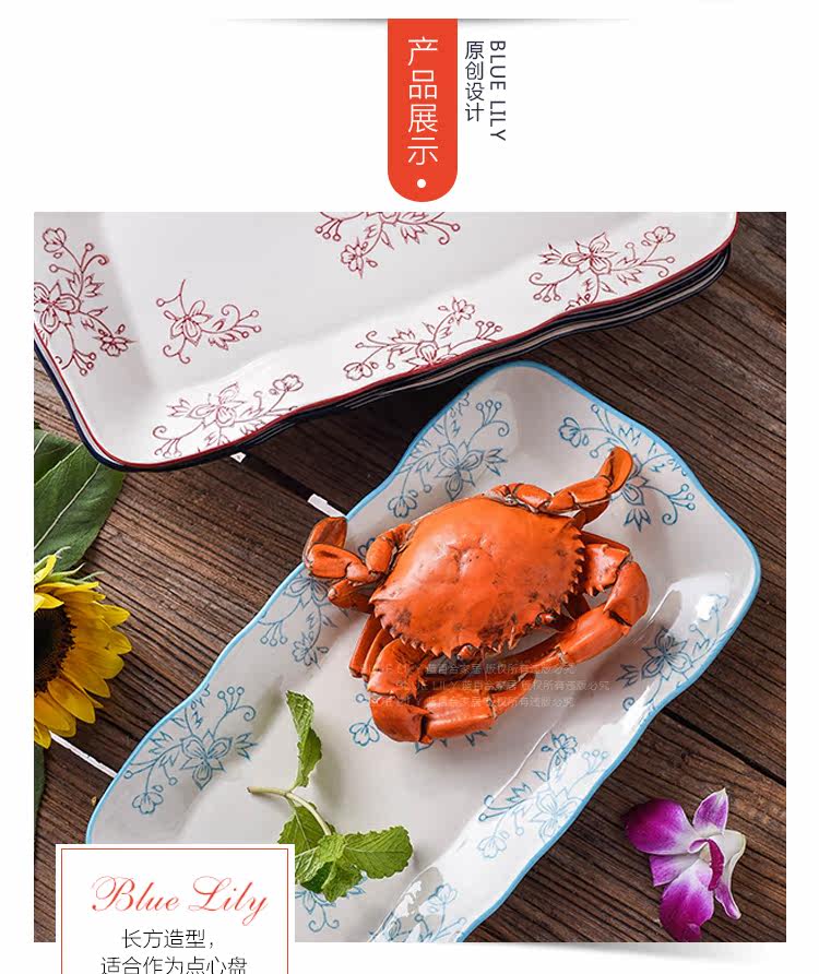 创意釉下彩复古陶瓷波浪边长方鱼盘家用炒菜盘寿司盘点心碟