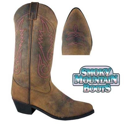 Studio : SMOKY MOUNTAIN BOOTS, INC Publisher : SMOKY MOUNTAIN BOOTS, INC Binding : Misc. Product Description Smoky Mountain(R) Ladies' Taos Boots A fashionable leather Western boot with a taller shaft, perfect for the ladies. Features: Leather upper Man-made lining J-Toe Western heel Composition sole Steel shank Item Specifications: Size: 12" height Color: Dark Crazy Horse 0