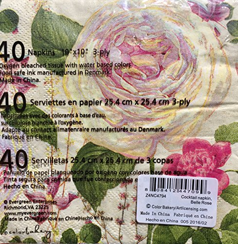 Cypress Home Cocktail Beverage Paper Napkins ~ Belle Rose 40 ct