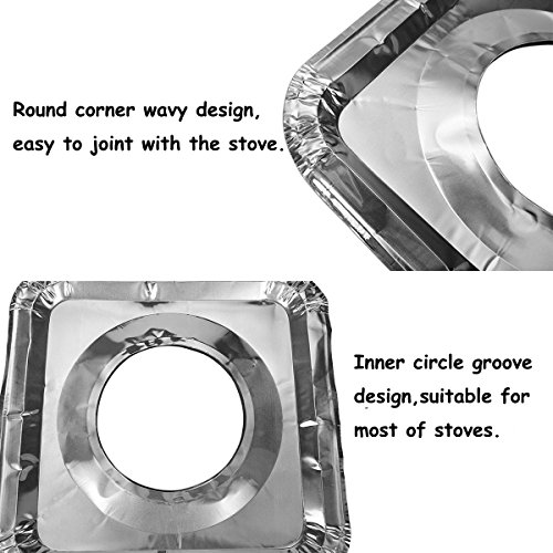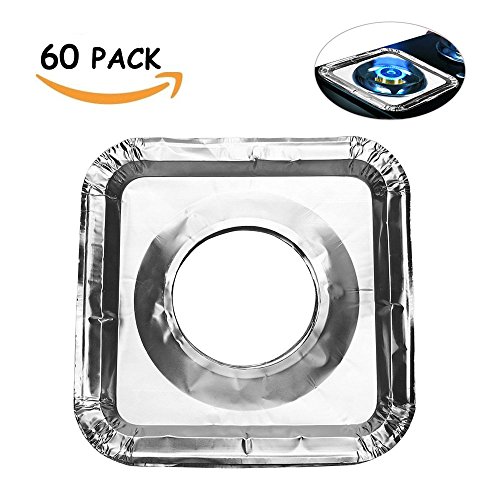 60 PCS Stove Burner Covers, Disposable Heavy Thick Aluminum Foil Square Gas Burner Bib Liners Covers,8.6"×8.6"×0.8" /3.75" Liners