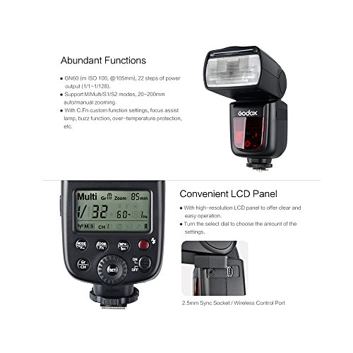 However, you can still control this flash wirelessly via Godox X1T-S Transmitter. V850II Specification Guide Number(1/1 power @ 200mm): GN60(m ISO 100)