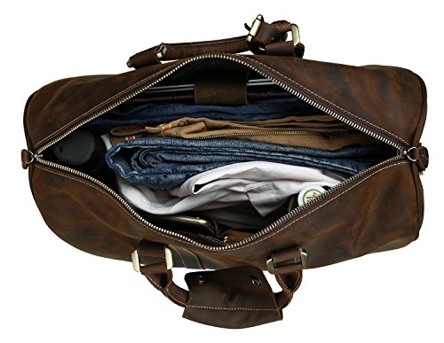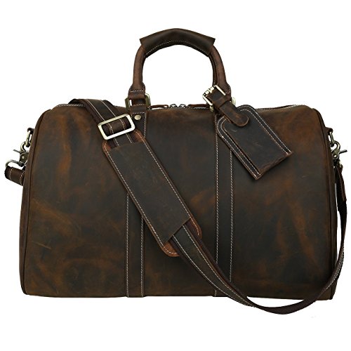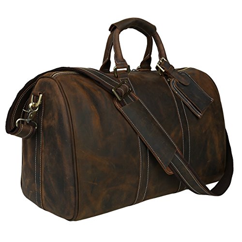 -. Title : Polare Men's 18'' Retro Real Leather Weekender Duffel Overnight Bag Carry On Lage