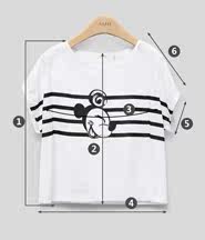 尺码 ①前衣长 ②后中长 ③胸围 ④下摆围 ⑤袖口围 ⑥袖长