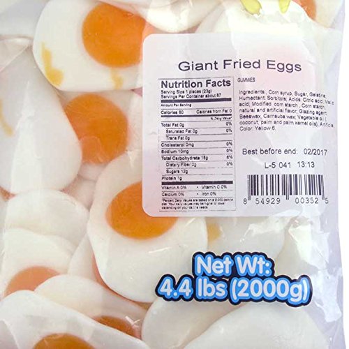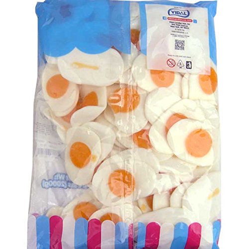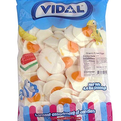 -. Feature : Large Gummy Fried Eggs / These Sunny-Side-Up Gummy Eggs will make your mornings tasty! / Gummy Fried Egg Width: 3-inch Wide. / There are approximately 35 pieces per pound. Bag contains 4.4 pounds of Vidal Gummy Fried Egg Candy. / Made in Spain by Vidal