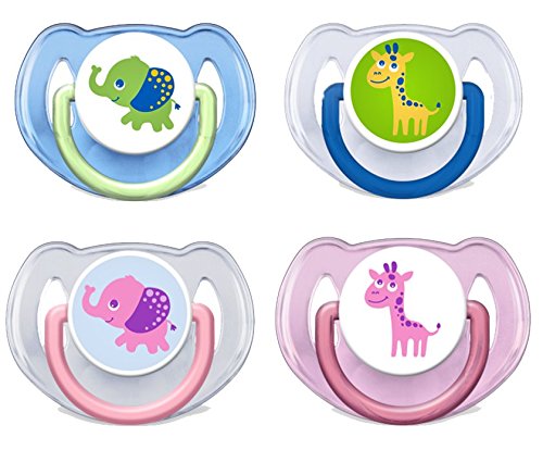-. Feature : Philips Avent // Trend-Serie // Klassische kiefergerechte Schnuller // Safari // 6-18 Mo., / 2er Pack : Elefant/Giraffe blau oder Elefant/Giraffe rosa / Farbe nicht frei wählbar / Symmetrische Saugerform: liegt immer richtig herum im Mund / inkl. 2 aufsteckbarer Hygienekappe, BPA-frei, Made in England